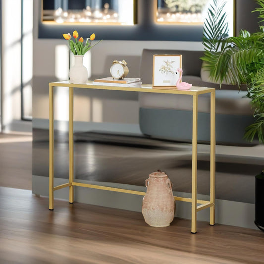 Gold Metal Hallway Console Table With Tempered Glass Gold