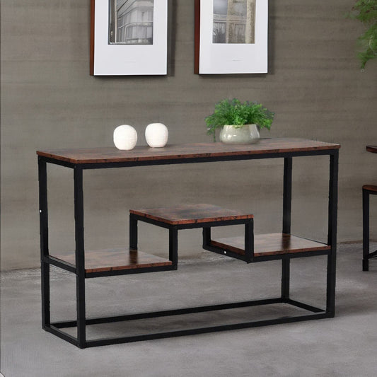 Industrial 2 Tier Console Table With 2 Drawers Brown
