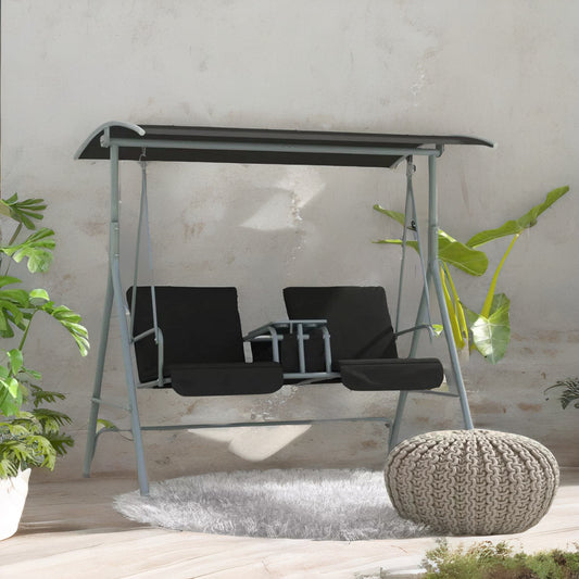 2 Seater Garden Swinging Chair With Pivot Table And Storage Black