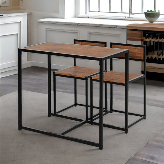 Industrial 3-Piece Dining Table Set With 2 Chairs Brown