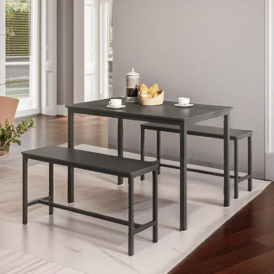 Industrial Compact Dining Table With 1 Bench & 2 Chair Set Grey