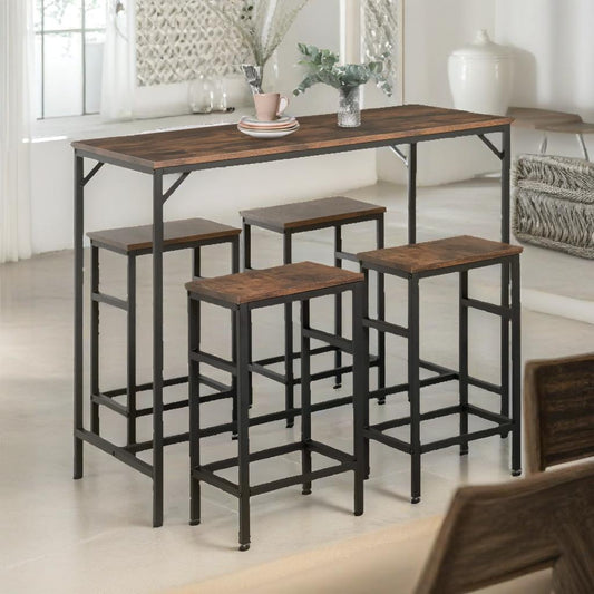 Industrial Dining Table And 4 Stools Set Rustic Brown