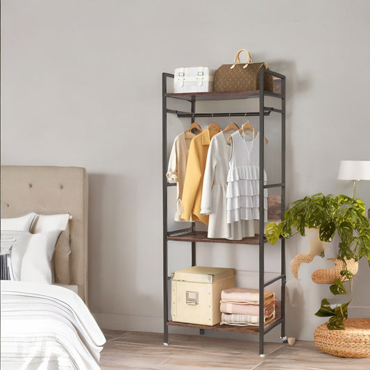 Industrial Heavy Duty Metal Open Wardrobe With Shelves Rustic Brown