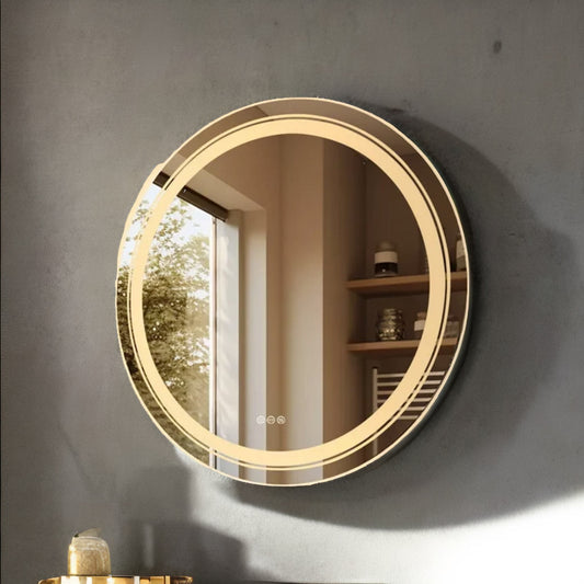 LED Illuminated Dimmable Round Wall Mirror With Anti-Fog And Demister