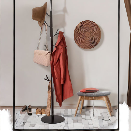 Marble Base Adjustable Coat Stand With 8 Hooks Black