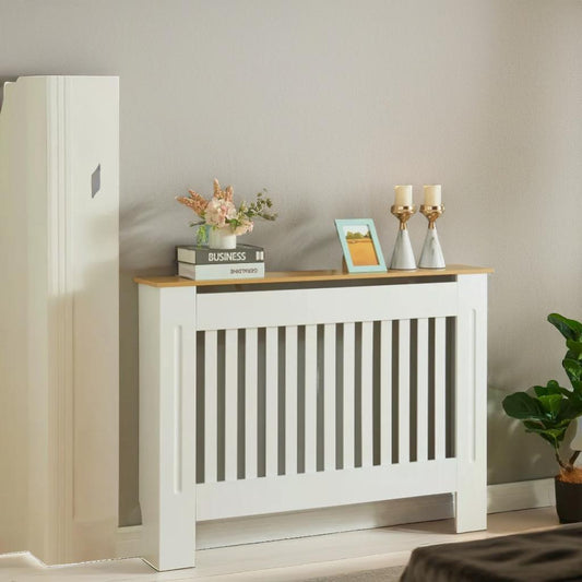 Modern Radiator Cover With Wooden Top Shelf White