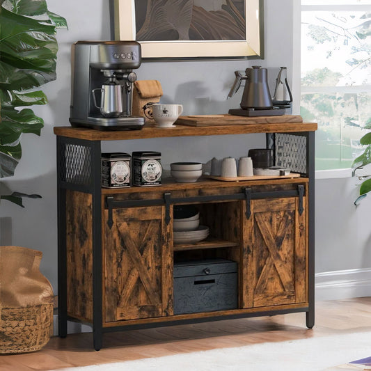 Multipurpose Kitchen Sideboard Cabinet With Sliding Barn Doors Rustic Brown