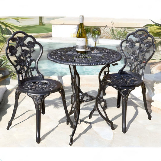 Set of 3 Cast Aluminium Bistro Table And Chair Black