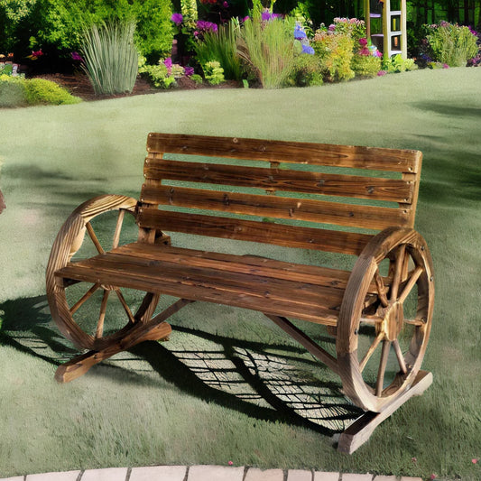 Wooden 2 Seater Wagon Wheel Outdoor Bench Rustic Brown
