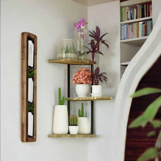 3 Tier Wall Mounted Floating Corner Shelf Rustic Brown