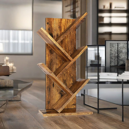 4 Tree Book Shelf Free-Standing Industrial Rustic Brown