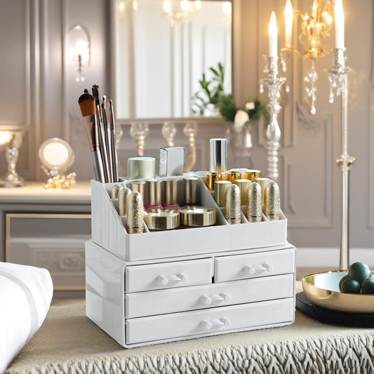 3 Tier Acrylic Make Up Organiser With 4 Drawers White