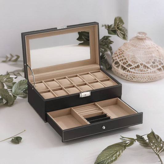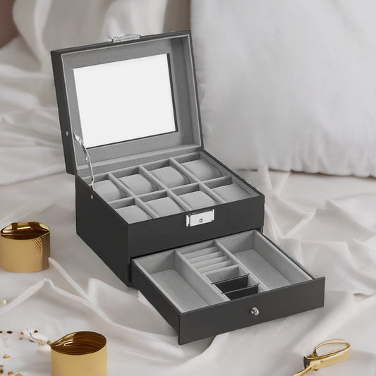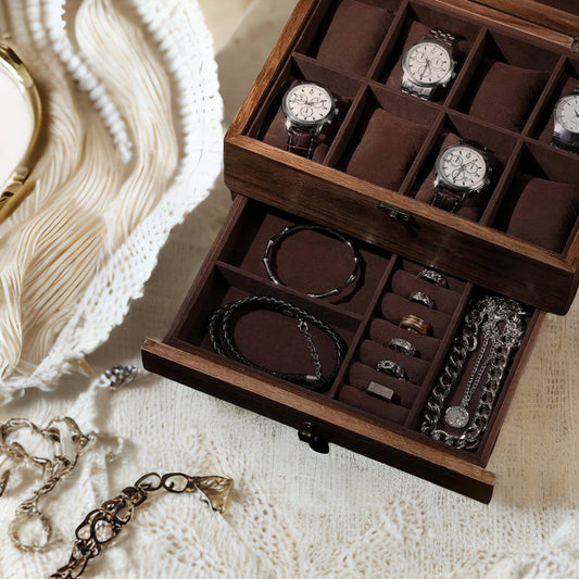 8 Slot Wooden Watch Lockable Box Rustic Walnut