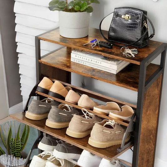 3 Drawer Shoe Storage Cabinet With Shelf Rustic Brown