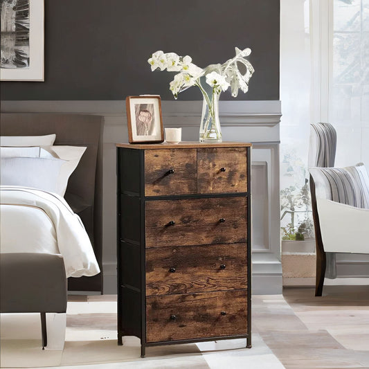 5 Fabric Drawer Bedroom Dresser Storage Organiser Rustic Brown