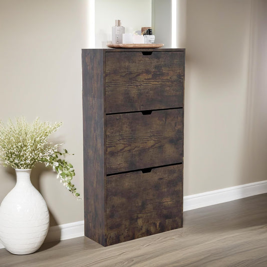 Industrial Hallway Shoe Storage Cabinet With Flip Drawers Rustic Brown