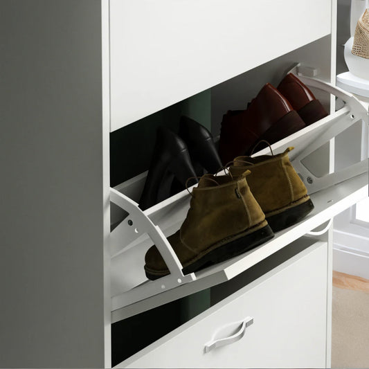 3 Tier Wooden Shoe Storage Cabinet White