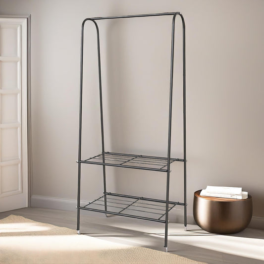 Heavy Duty Metal Clothes Rail Open Wardrobe With 2 Shelves Black
