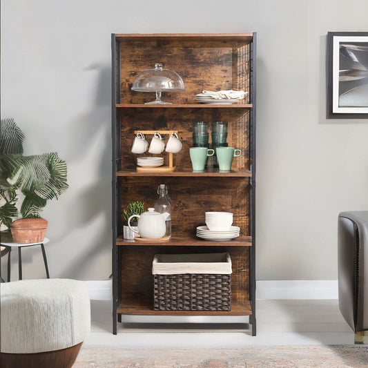 Industrial 5 Tier Bookcase Storage Shelf Unit Rustic Brown