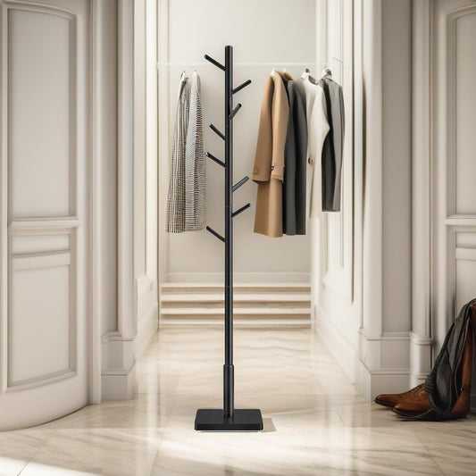 Wooden Square Base Coat Stand With 8 Hooks Black