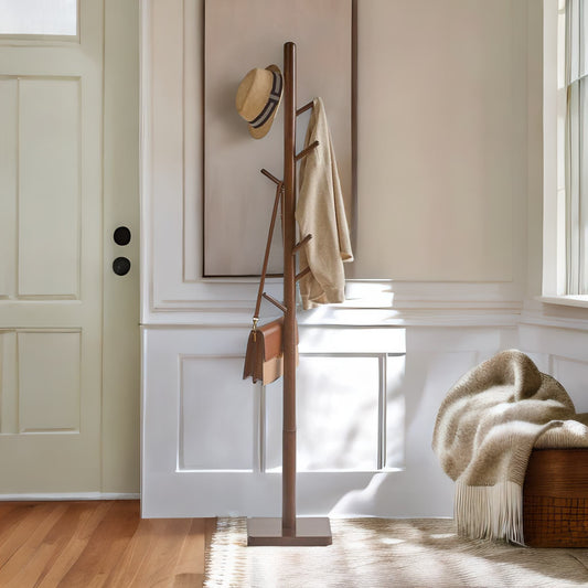 Wooden Square Base Coat Stand With 8 Hooks Brown