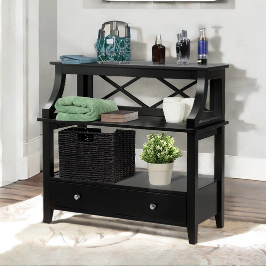 Modern 3 Tier Console Table With 2 Drawers And Storage Shelves Black