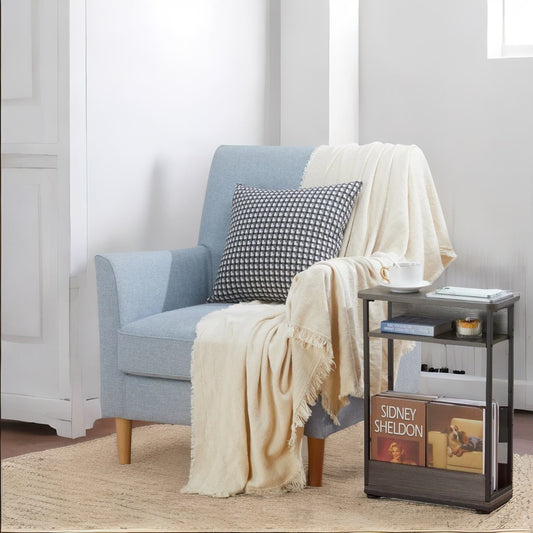 Industrial Rustic 3 Tier Side Table With Magazine Rack Grey