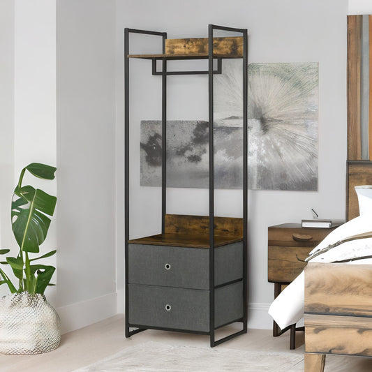 Industrial Hall Tree Coat Rack With 2 Fabric Drawers Brown