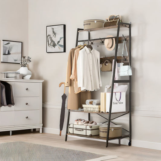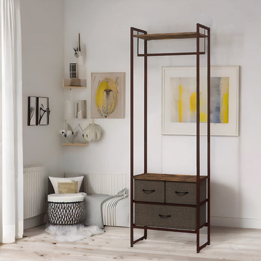 Industrial Hall Tree Coat Rack With 3 Fabric Drawers Brown