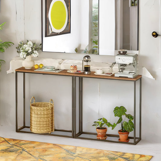 Industrial Square Metal Hallway Console Table Rustic Brown