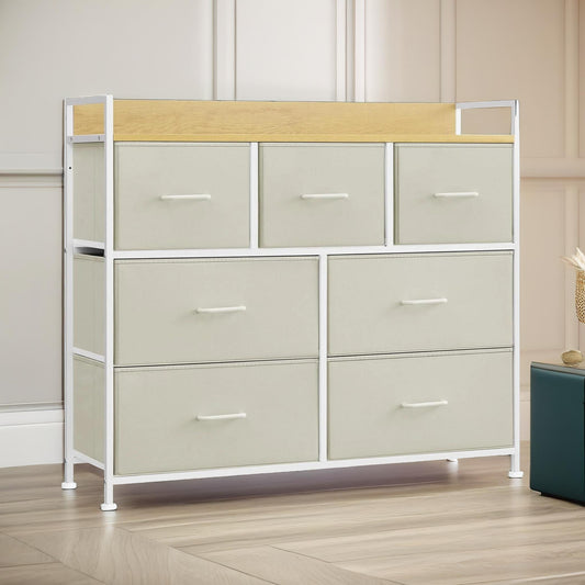 Industrial Bedroom Chest With 7 Fabric Drawers Cream