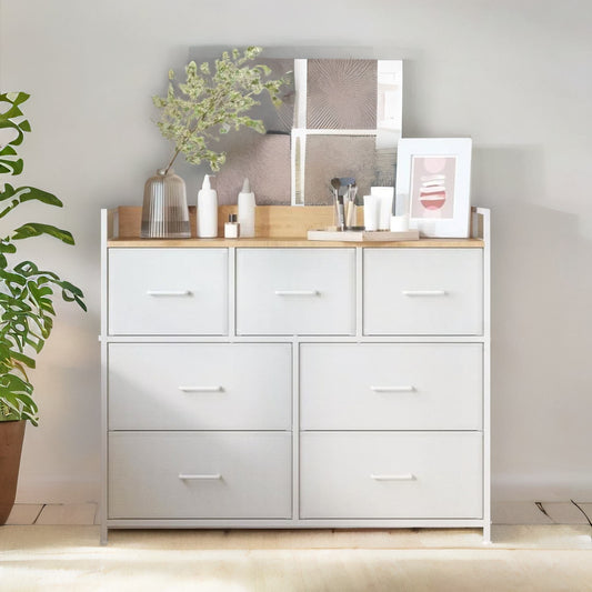 Industrial Bedroom Chest With 7 Fabric Drawers White