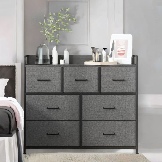 Industrial Bedroom Chest With 7 Fabric Drawers Slate Grey