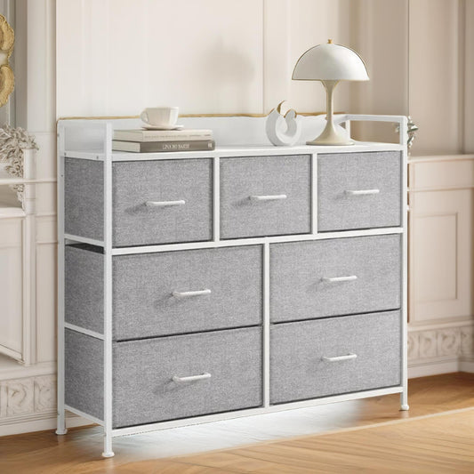 Industrial Bedroom Chest With 7 Fabric Drawers Light Grey