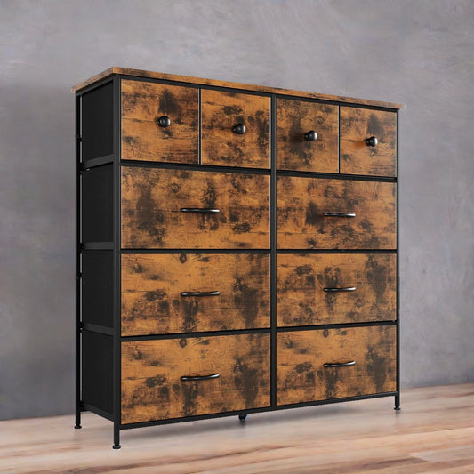 Industrial 10 Fabric Drawer Chest Rustic Brown