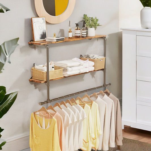 Industrial Wall-Mounted Clothes Hanging Rail Brown