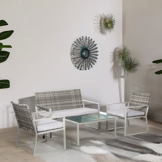 Set of 4 PE Rattan Garden Bistro Furniture Set Grey