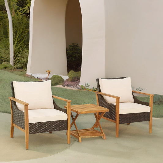 Set of 3 Bistro Wooden Table And Wicker Chairs Natural Brown