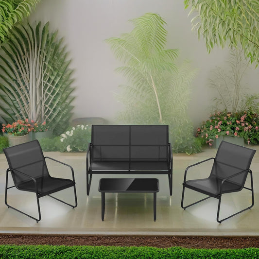 Set of 4 Conversation Garden Bistro Furniture Set With Table Black