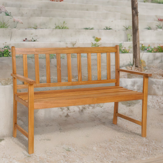 Wooden 2 Seater Outdoor Bench With 2 Arm Rests Natural Brown