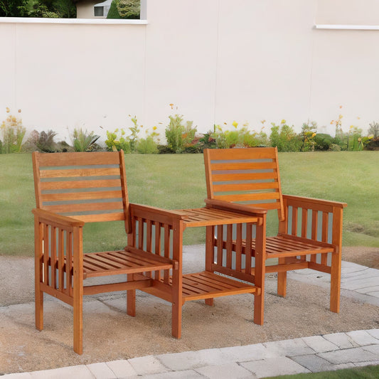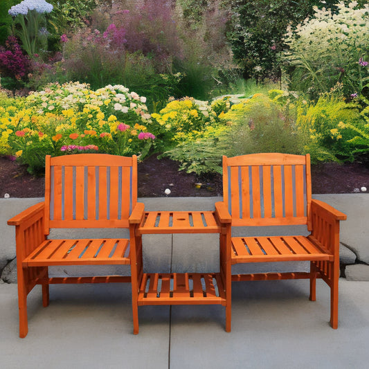 Wooden 2 Seater Outdoor Bench With 2 Tier Table Love Seat Natural Brown