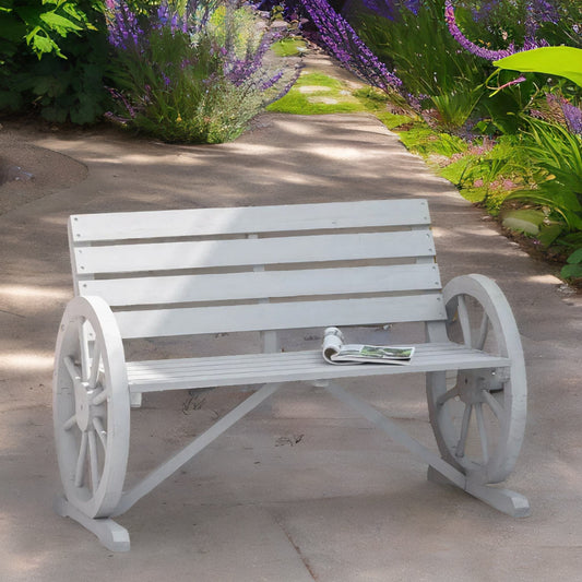 Wooden 2 Seater Wagon Wheel Outdoor Bench Grey