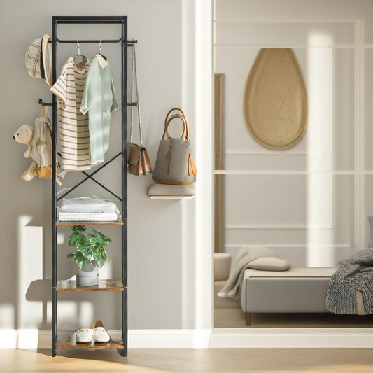 Industrial Coat Stand With 3 Shelves And 8 Hooks Brown