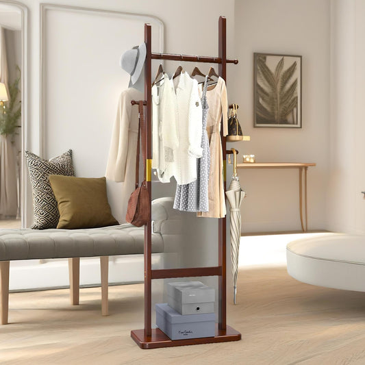 Tall Wooden Coat Stand With 5 Hooks Dark Brown