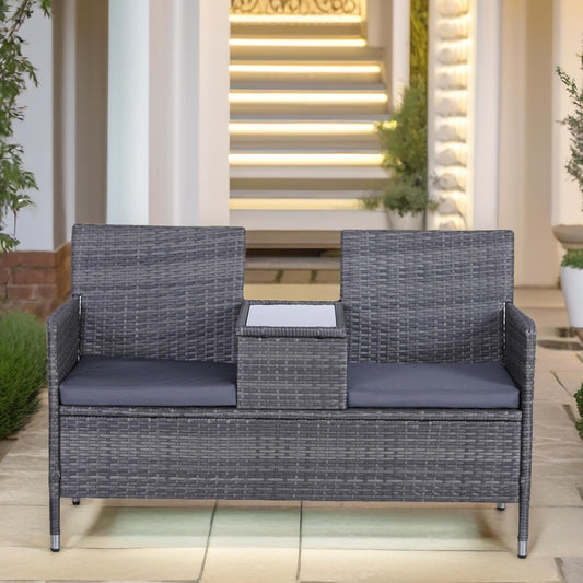 Polyrattan 2 Seater Outdoor Bench With Padded Cushions Black