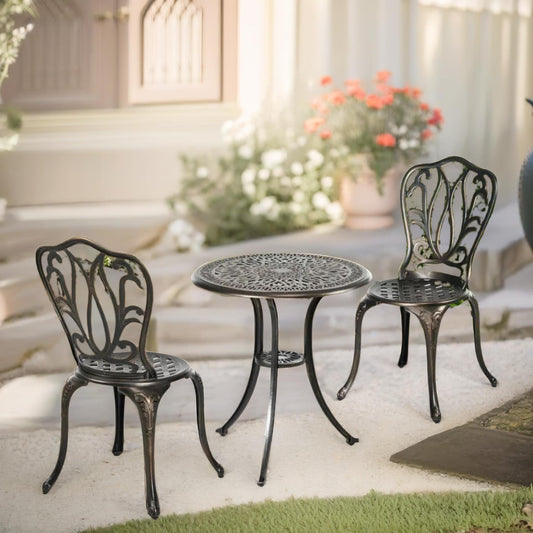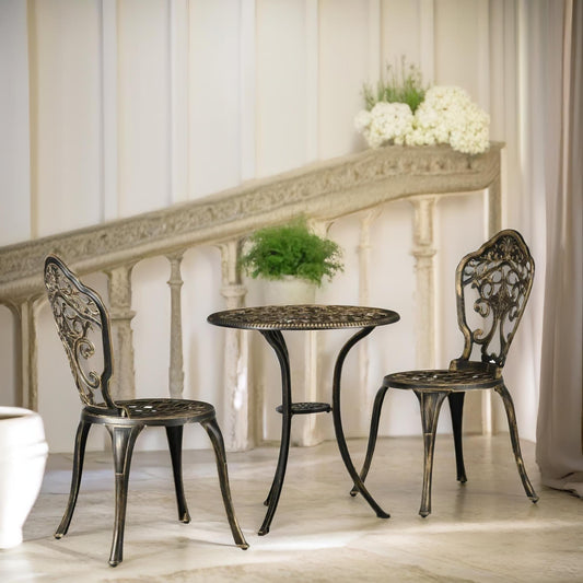 Set of 3 Aluminium Bistro Table And Chair Bronze