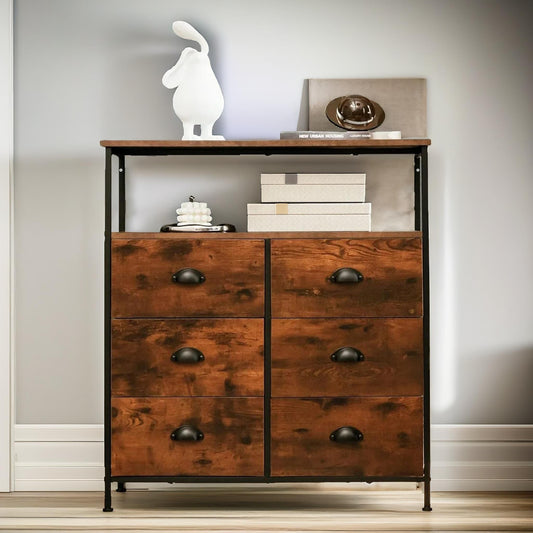Industrial Bedroom Dresser Chest Of 6 Drawers Rustic Brown