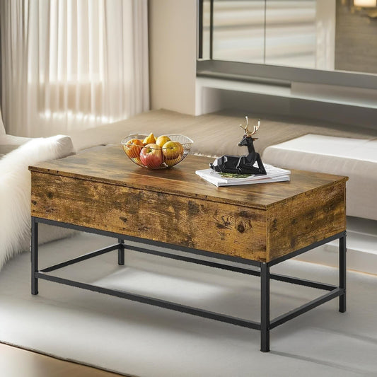 Industrial Lift Top Coffee Table With Hidden Storage Rustic Brown
