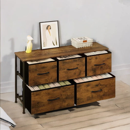 Bedroom Dresser With 5 Fabric Storage Drawers Rustic Brown