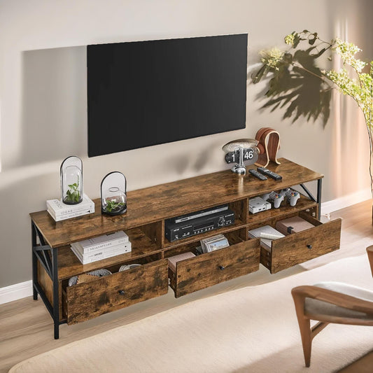 Industrial TV Stand Unit With 3 Drawers Rustic Brown